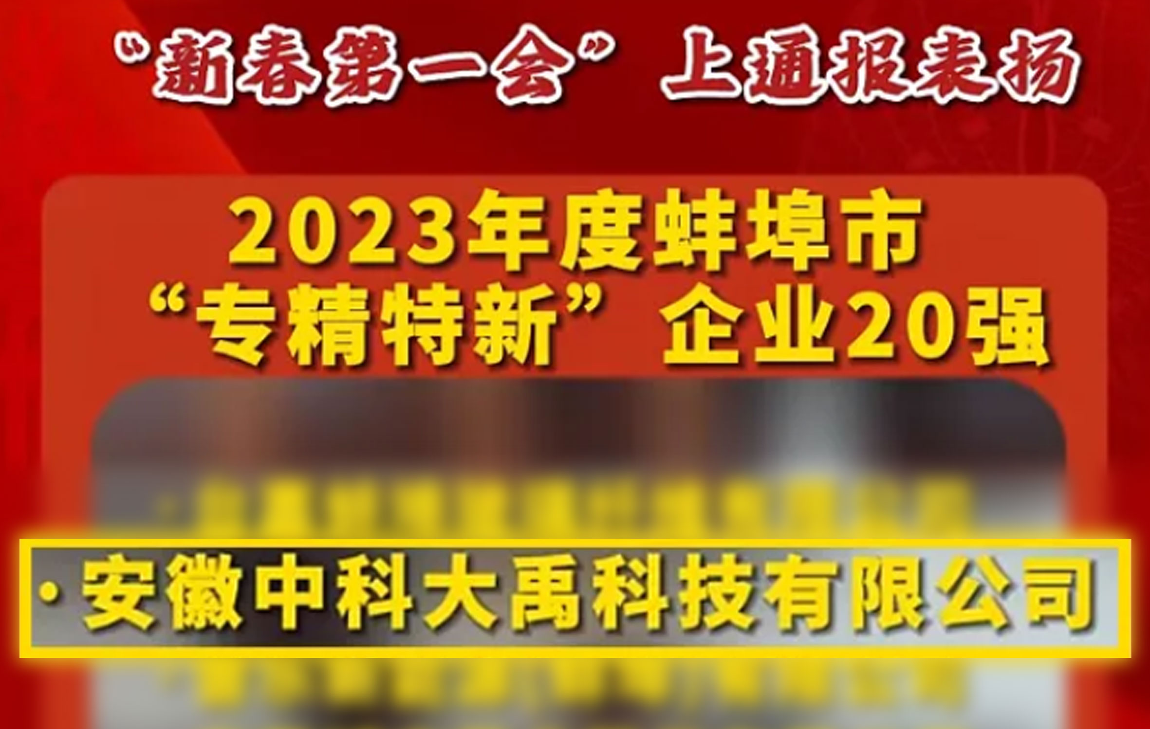 中科大禹榮登2023年度蚌埠市“專精特新”企業20強